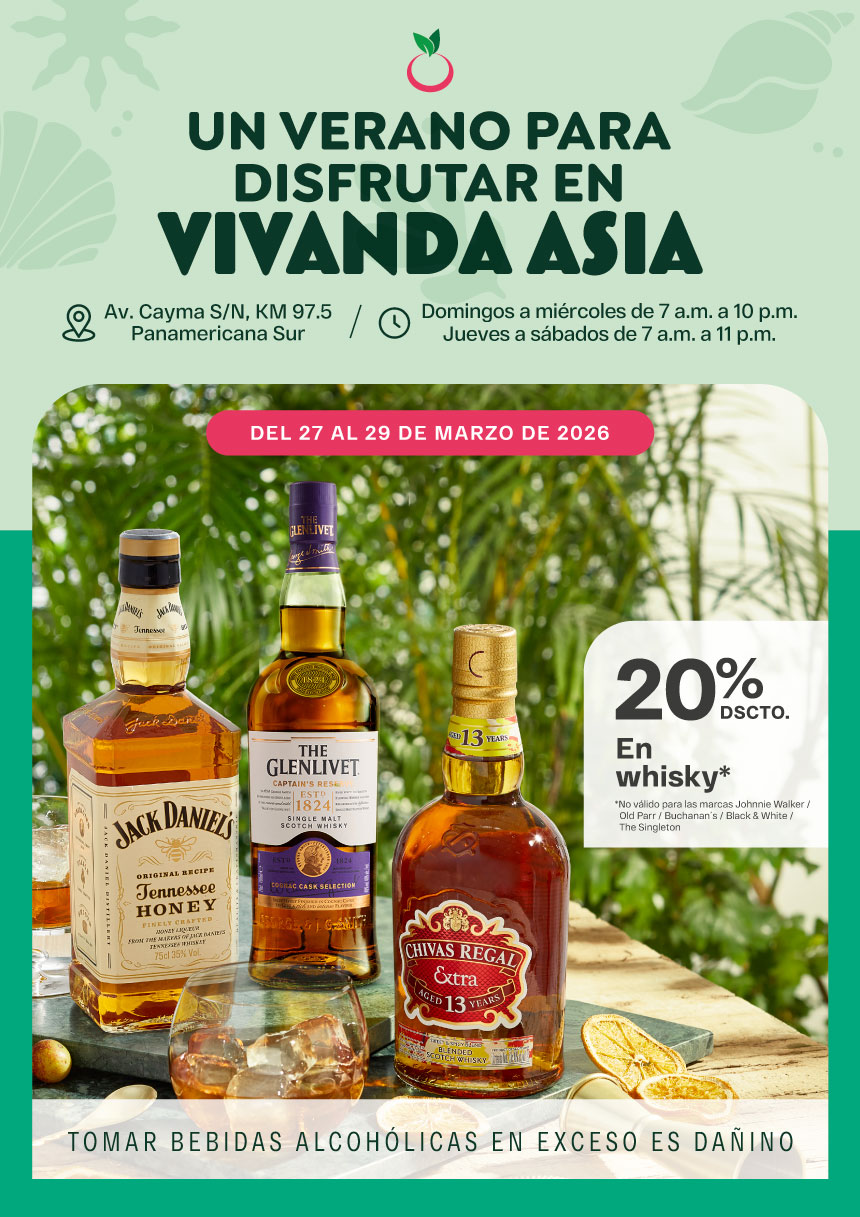 VER MÁSCOMPAÑIA FOOD RETAIL S.A.C. RUC 20608300393. Precios válidos en Vivanda del 02 de enero al 31 de marzo de 2026 o hasta agotar stock, lo que ocurra primero. En categorías abarrotes: máximo 03 unid. por oferta por cliente. En categoría frescos: máximo 05kg/05 unid. por oferta por cliente. Stock mínimo por producto en abarrotes: 10 unid. a nivel cadena. Stock mínimo por producto en frescos 10kg/10 unid. a nivel cadena. Precios no acumulables con otros beneficios ni descuentos. Las promociones con porcentaje de descuento son aplicables con otras ofertas. Publicidad dirigida a mayores de 18 años. Sujeto a disponibilidad de tienda. Precios válidos para compras presenciales y tienda online. Aplica condiciones y restricciones en www.vivanda.com.pe